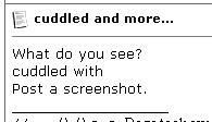 Using Windows XP, I see "cuddled with" in Firefox 2, yet I see a bunch of square box characters in IE6: "□□□□□□□ □□□□". In both browsers, the title for the page is "□□□□□□□ and more..."