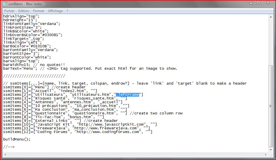 3) Describe problem: Not really a problem, plus a question( I didn't know if thi was the good topic so I took chance hehe.) I would like to know if it is possible that when I click the link in the menu, the webpage appears in one of the frames. (On my website, I put a Top Frame(Title) , a Left Frame(where the menu is) and the normal frame(webpage) and I would like to keep the title and the menu everywhere. I tried to modify this: