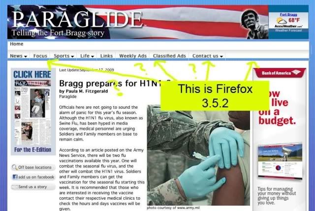 All the other web browsers I've looked at view the page fine, but they only problem is Firefox 3.5.2 and this is what it looks like: