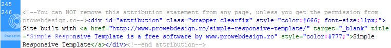 The link back credit to prowebdesign.ro is a requirement for using their free website template, however, it looks like you've now removed it.